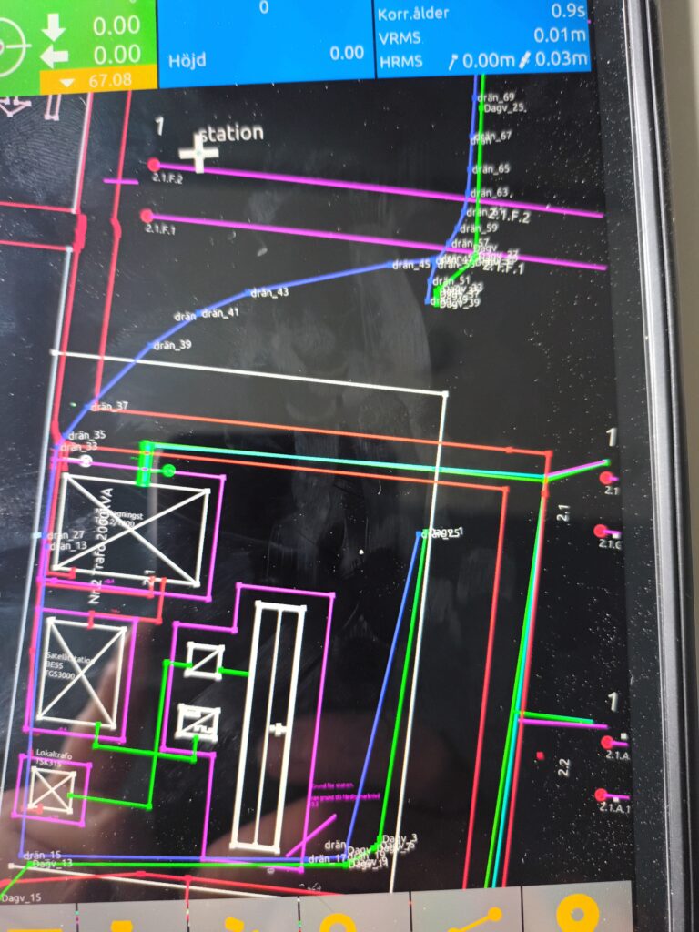 - Inmätning av brunnar, nedgrävda ledningar, provgropar och dolda konstruktioner.